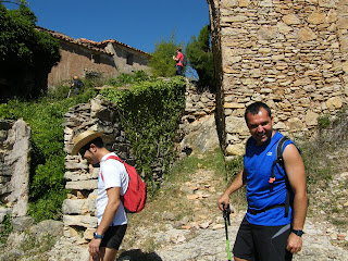 Aqui tenemos al grupo, ya en el Tormo, antes de comenzar la marcha...Salida de la poblacion...y comenzamos por la ruta marcada en colores amarillo y blanco, en direccion al Fire